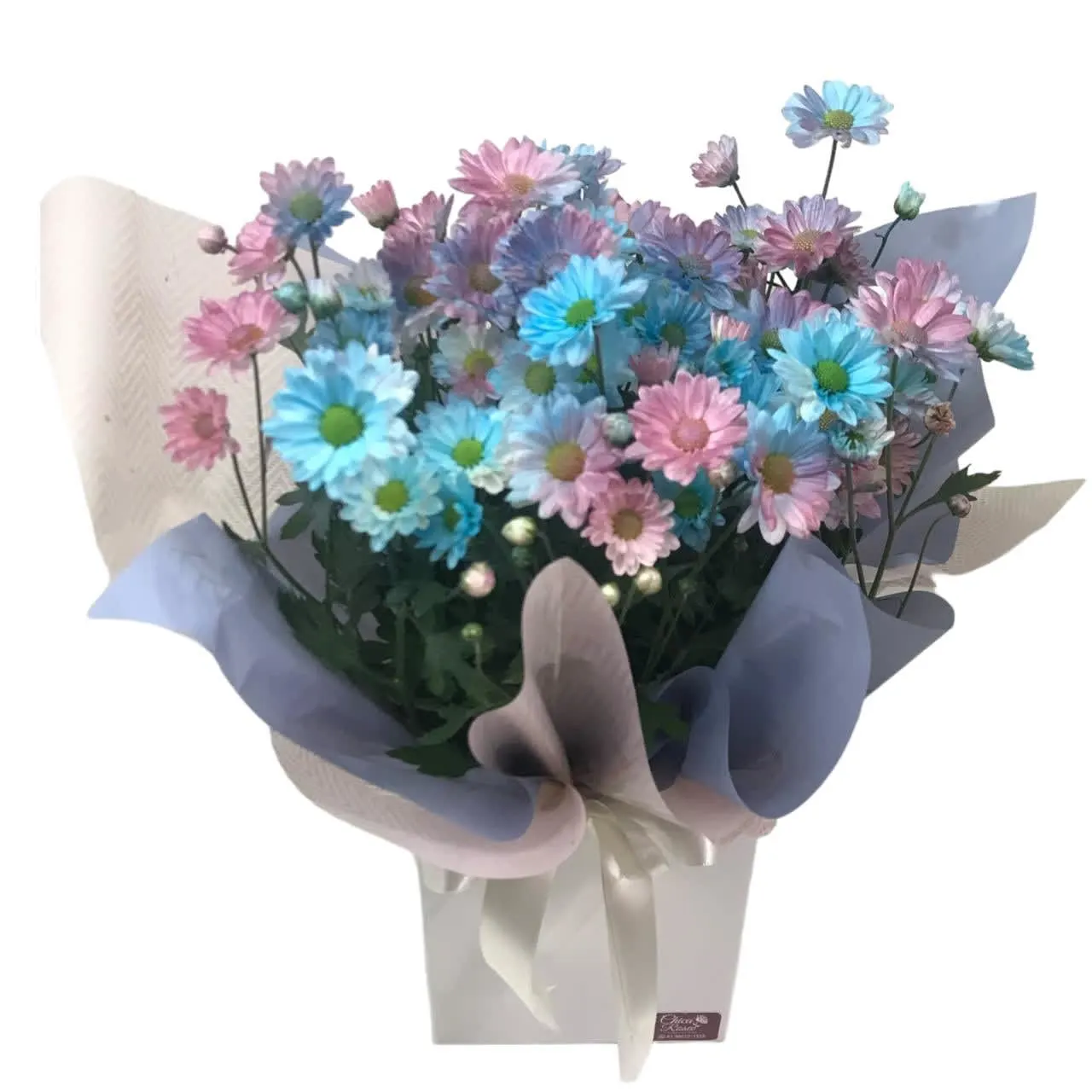 Vem embalada para presente, com um cachepô cartonado e laço.