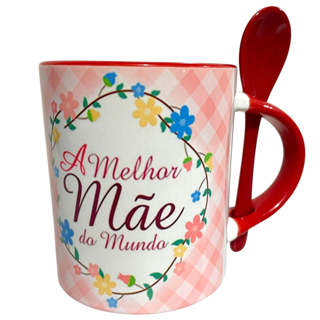 Com um design delicado em tons de rosa e estampa xadrez suave, essa caneca traz a frase “A Melhor Mãe do Mundo” envolvida por uma linda moldura floral colorida, transmitindo carinho e amor em cada detalhe. A alça com colher acoplada adiciona praticidade e um toque moderno ao produto, ideal para o dia a dia.