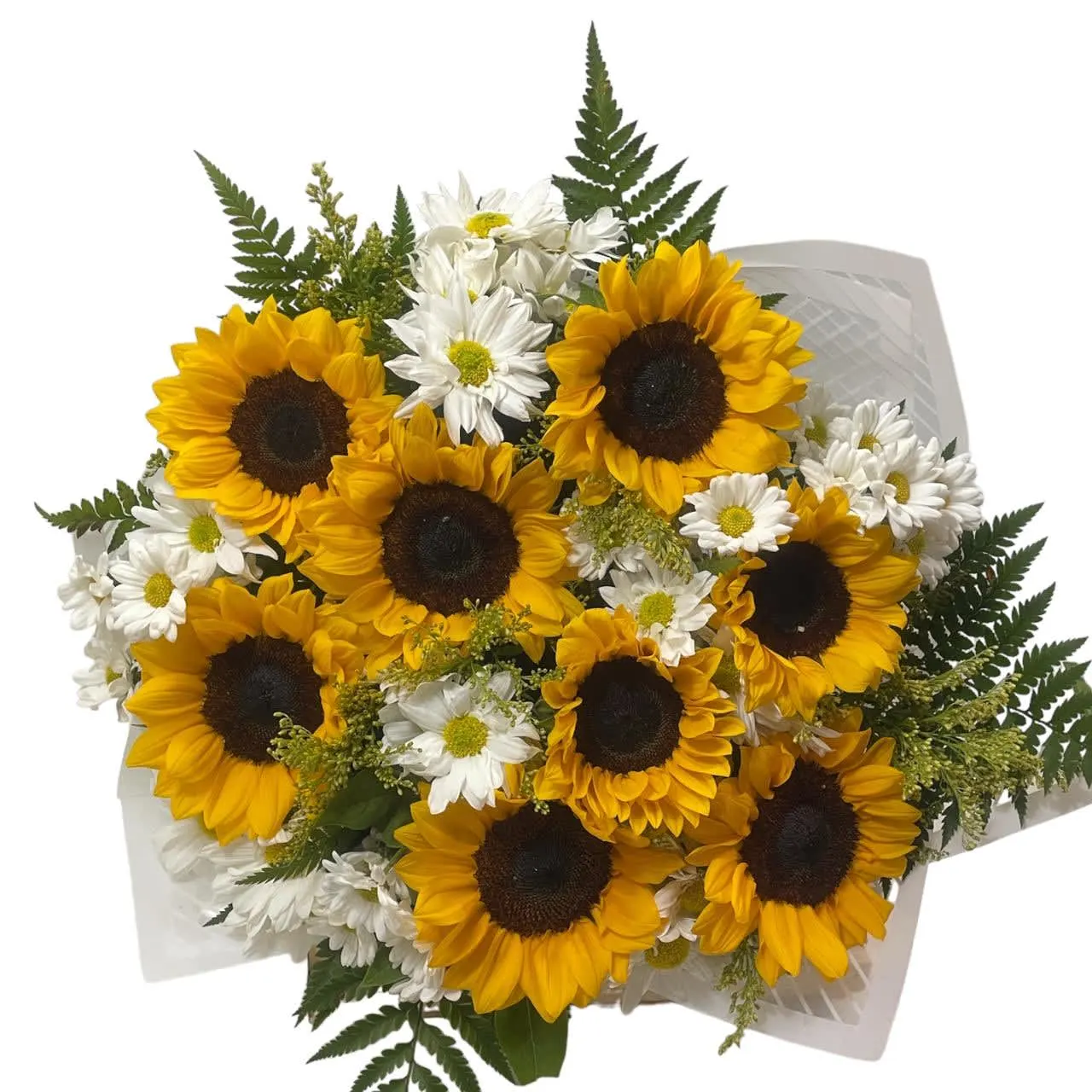Composto por 8 hastes de Girassóis e 6 hastes de Margaridinhas